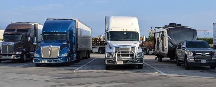 I thought by taking this picture, it would make us feel smaller in comparison with the semis. I kinda was expecting there to be a more dramatic difference, though. I guess our trailer and truck are pretty big.