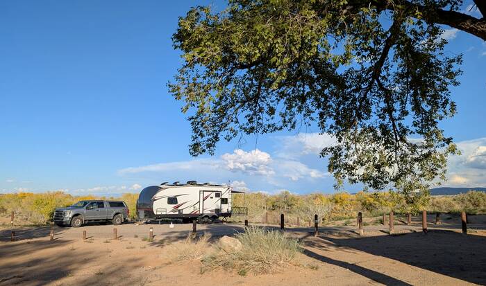 Our campground was in the suburb of Bernalillo, just north of ABQ. It was a city-run park that mostly had standard RV sites except for one site tucked away in a corner that didn't have any hookups. That's the one we opted for, and it sure had a great view!