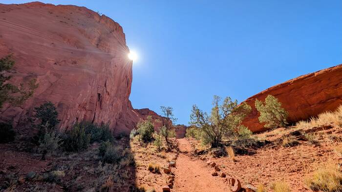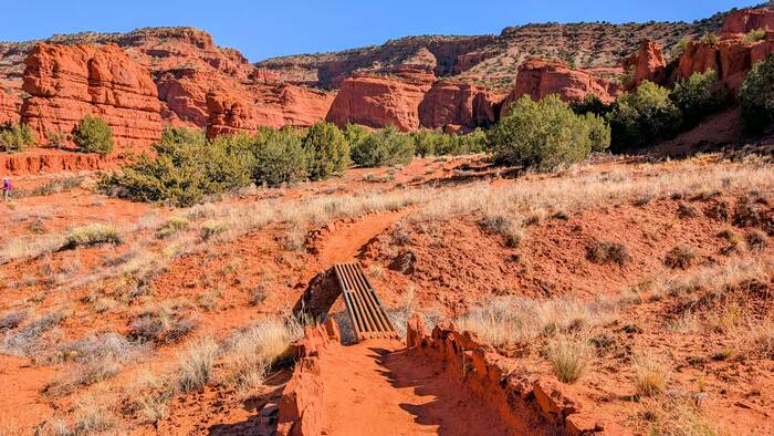 The aptly named Red Rocks trail is on Native American land. We ended up paying $12 each (plus tax) to walk the 1 1/2 mile (round trip) trail. The price seemed a little steep, but it probably cuts down on the crowds.