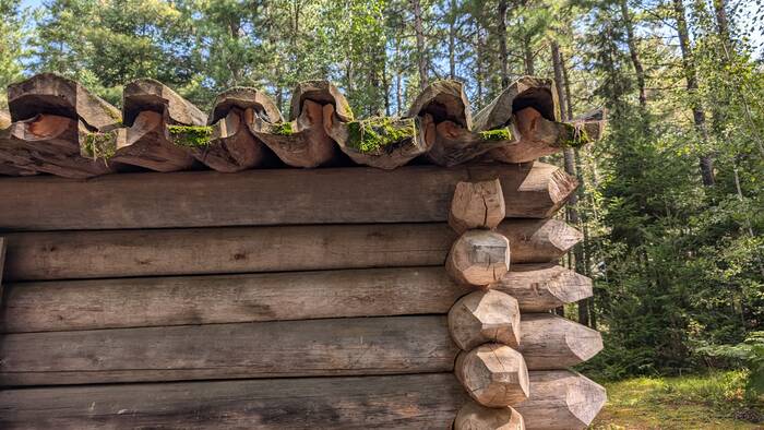The roof was made of overlapping hollowed-out logs cut in half lengthwise