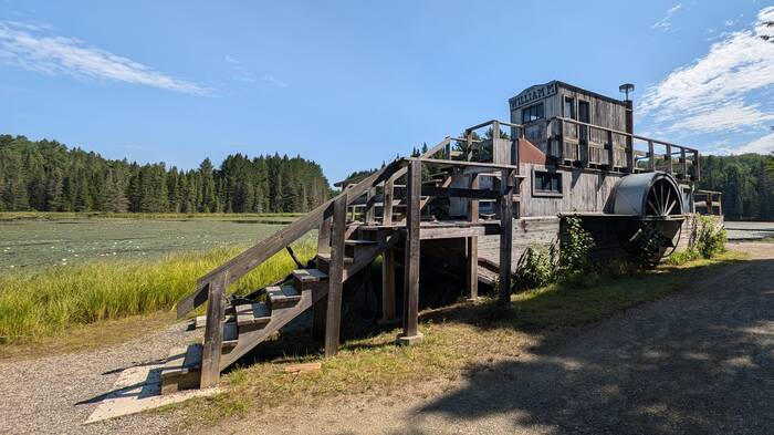 On Sunday, we drove to the Logging Museum within the park. We were pleasantly surprised how well done it was. The exhibit experience started with a 15-minute movie of the history of logging in the land that is now Algonquin Provincial Park, followed by a 3/4-mile interpretive trail tracing this history with old buildings, equipment and other artifacts from the logging days.