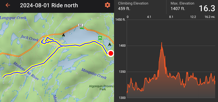 Algonquin Provincial Park is all about the lakes. Every campground is situated on at least one lake. The park appeals to those who enjoy canoeing, as many of the lakes are connected together. We didn't canoe, but plenty of others did. We spent our time mostly just hanging out and biking the park's rail-trail system. We took three separate rides during our stay.