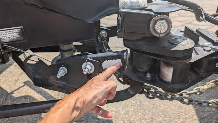After concluding that this particular component wasn't strictly necessary to keeping the trailer attached to the truck, we departed with the plan to deal with this at our next location. (FYI: This component keeps the trailer from swaying. Without it, the trailer can meander side to side uncomfortably, and the tongue of the trailer can shift left and right a couple of inches during braking--also a little unsettling.)
