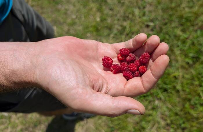 After seeing many berry bushes in bloom during our travels, we finally got to partake in the fruit!