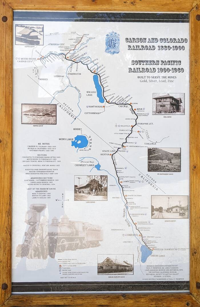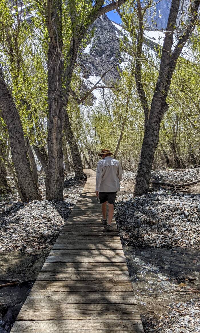 The next day we went into Bishop to check out the Laws Museum, get lunch at the famous Erik Schat's Bakery, fill a propane tank, and go grocery shopping. We also stopped by the visitor center to find out what hiking areas were open. Turns out, most of the roads into the mountains to the best trailheads were still closed due to snow or flood damage (no big surprise there, on account of the very snowy winter). The volunteer gave us a few suggestions, and we got some good maps and such.