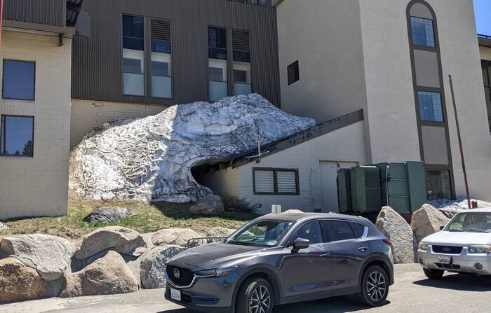 After a picnic lunch along the lakeshore, we drove further north (and higher up) to the town of Mammoth Lakes. Our next camping destination was supposed to be at a campground there, but we received notice a few days ago that our reservation was cancelled due to snow. We decided to take a ride there to check out the epic snow.
