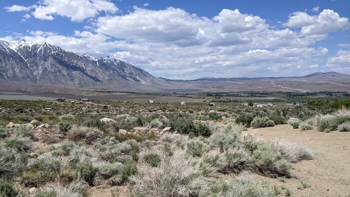 Looking down at the campground. You can just barely see Highway 395 in the distance.