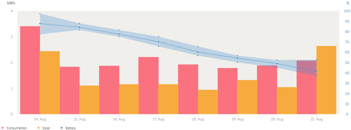 Counter-intuitively, we found out that the solar input did not drop as much as expected on cloudy rainy days in this shady site. We got around 1.1 kwH on sunny days, and about 0.9 kwH on a particular cloudy/rainy day. This surprised us, as we expected a much larger drop.