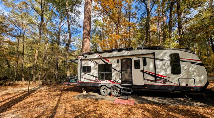 We weren't really expecting to experience autumn this year, and as we have learned throughout our lives, it is always better to have low expectations and be pleasantly surprised than to have high expectations and be disappointed. We had received some pleasant yellow pops of color surprises in New Mexico, and we were surprised to experience some additional color here at Caddo Lake State Park in Texas. While Texas is no New England, the warm golden glow of the campground was anything but a disappointment.