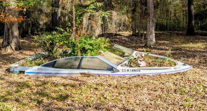 This boat's name is "Redneck Raft"