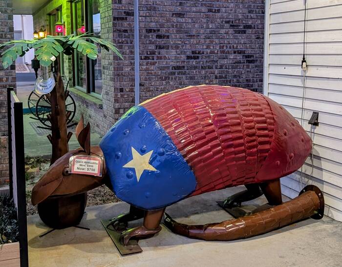 We were really tempted by this giant armadillo--and such a deal! Alas, even if we didn't attach the tail, there would be no room in the camper. Rick had suggested we bolt it to the roof, but Julie pointed out that we probably would never be able to go under a bridge ever again. But, how awesome would our camper look!