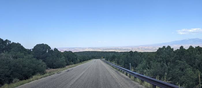 Oh great--a detour through a narrow winding mountain road! Well this was going to be interesting. At least the detour road promised to be paved, but it meant that we were going to have to go up through the mountains and then back down again. Oh well, not much choice here. So, we filled up the gas tank in Monticello and headed off into the mountains. Turns out, the road was plenty wide, and it was a surprisingly nice drive. As an added benefit, it was 20 degree cooler (it was getting into the 90s by now). The road wound through national forest land and eventually brought us back to Utah 211 so we could continue to our camp.