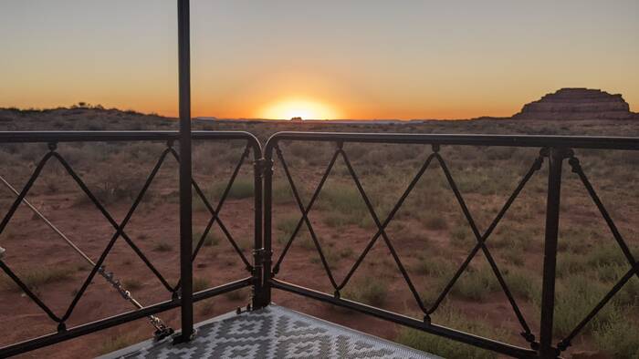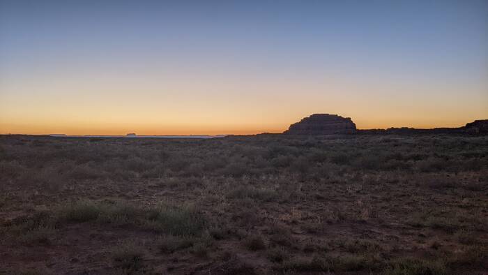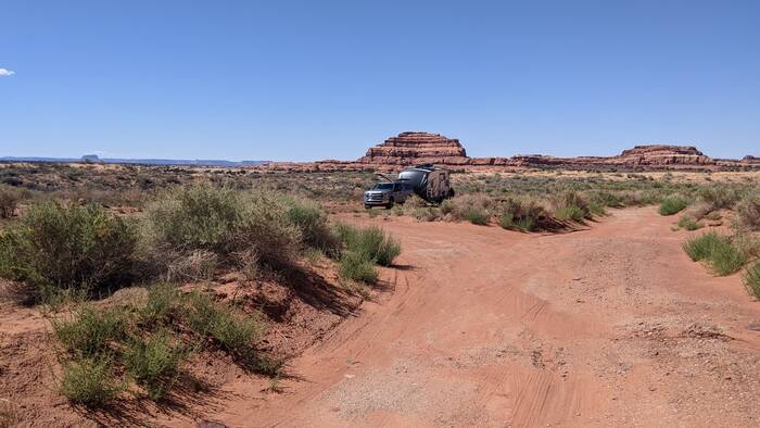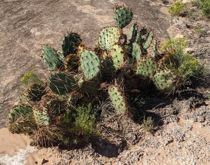 We stayed at Needles Outpost which is a little private campground adjacent to Canyonlands National Park and surrounded by other federal land. The property included a campground, a tiny general store (think ice cream and trinkets) as well as the only (expensive) gas pumps for many miles. The camp was very basic--they had no amenities, excepting a small bath house, and they trucked in water from 80 miles away. One side of our campsite was open to the desert with rock formations visible in the distance and the other side viewed a large smooth rock formation that looked like it would be fun for kids to climb on. When we arrived after 3pm it was hot (upper nineties), but it cooled down nicely in the evening. This was a very quiet campground and was fairly empty when we arrived.