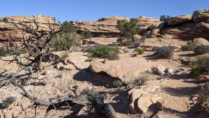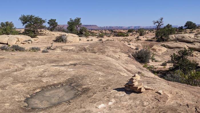 Much of the path was on the slickrock. Cairns (small piles of rocks) marked the trail.