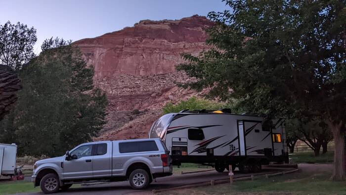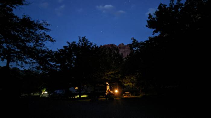 Capitol Reef is listed as a night sky location so they encourage all campers to keep outside lights off at night. The campground itself doesn't have major lighting (just local lighting at the bathrooms and it points down). So, this was a good place for Rick to try out some night shots just for fun!