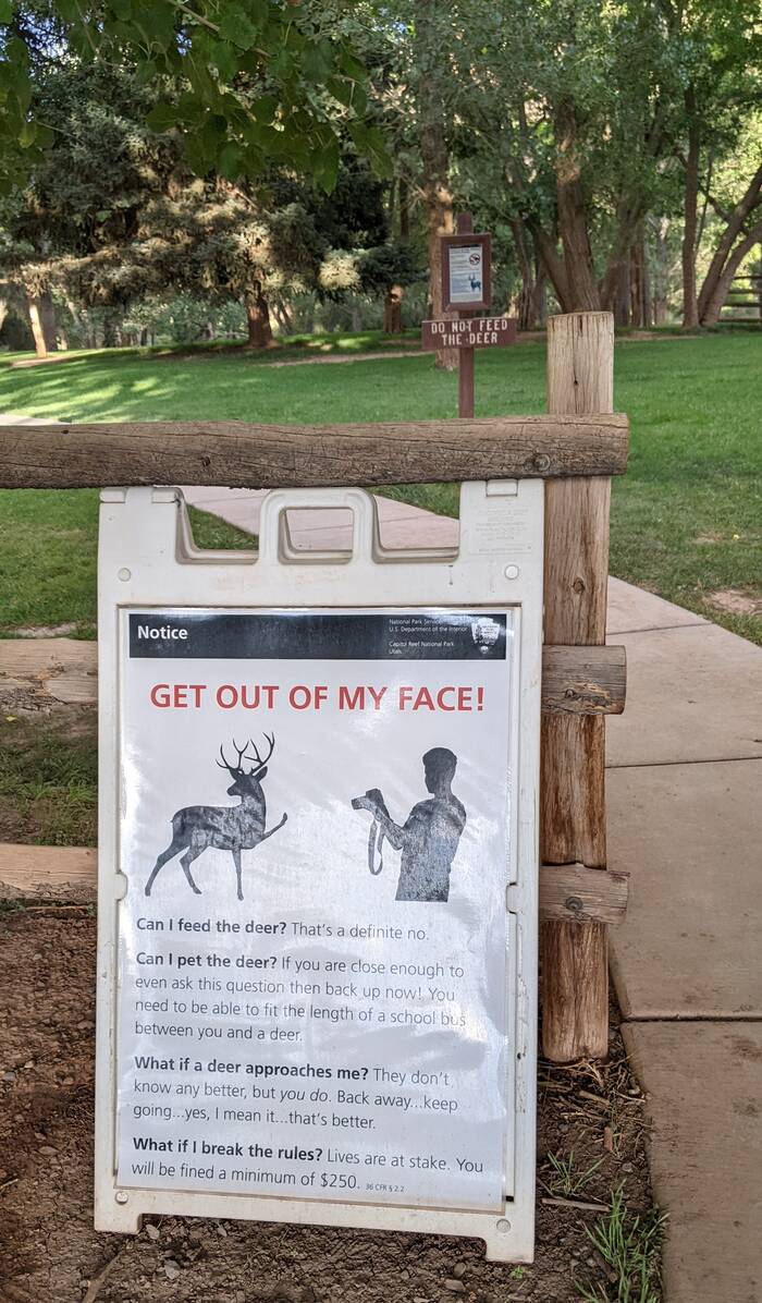 The park service was not subtle about wanting everyone to stay clear of the deer.