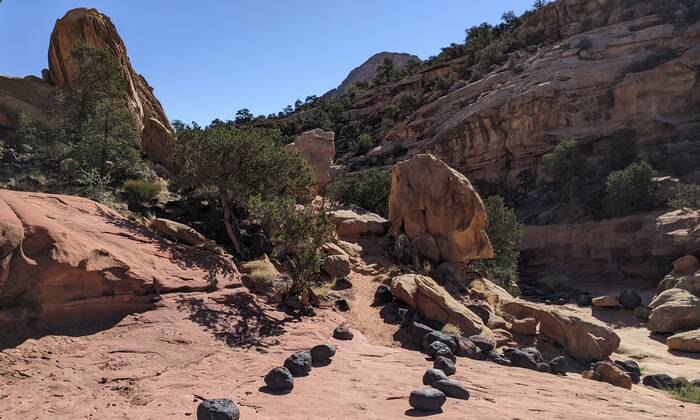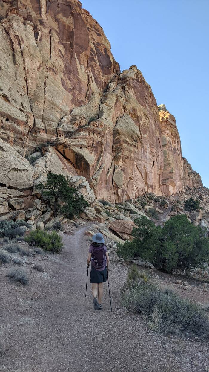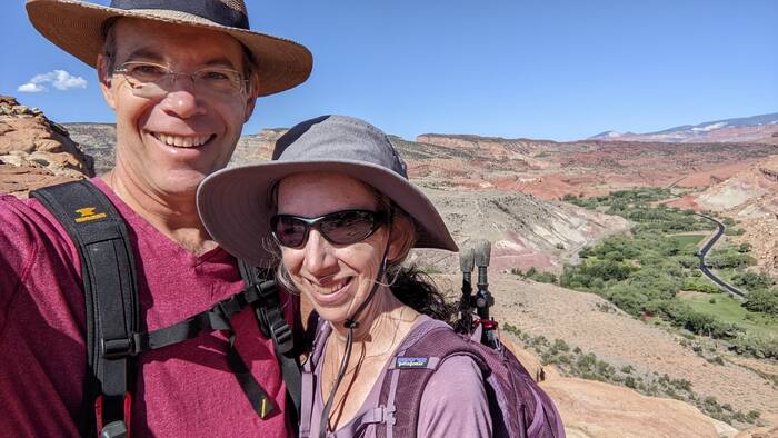 We were starting to get a routine to our days while at Capitol Reef. Each day was getting progressively hotter, so we would head out in the early morning and do something fun while it was reasonably cool. Then we would head back to the camper for lunch and to lounge around, recuperating (or doing something easy) until dinnertime. Evenings were spent enjoying the clear night skies out on the deck until it was time to go to bed. The next day, we would repeat the process. We are really enjoying the retired life!
