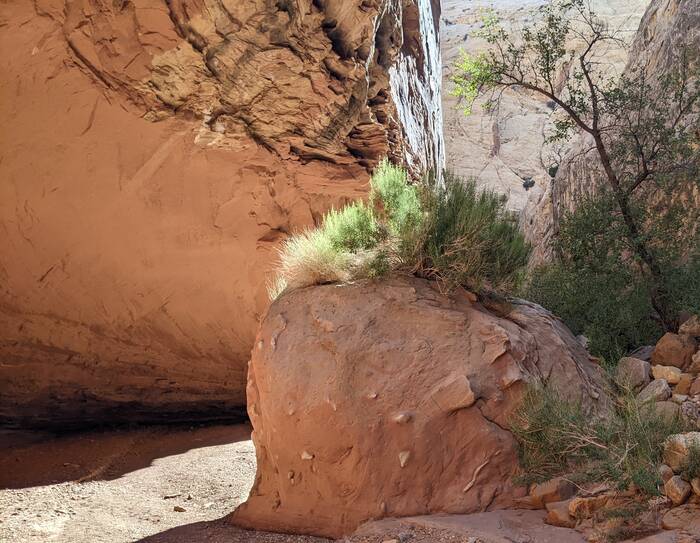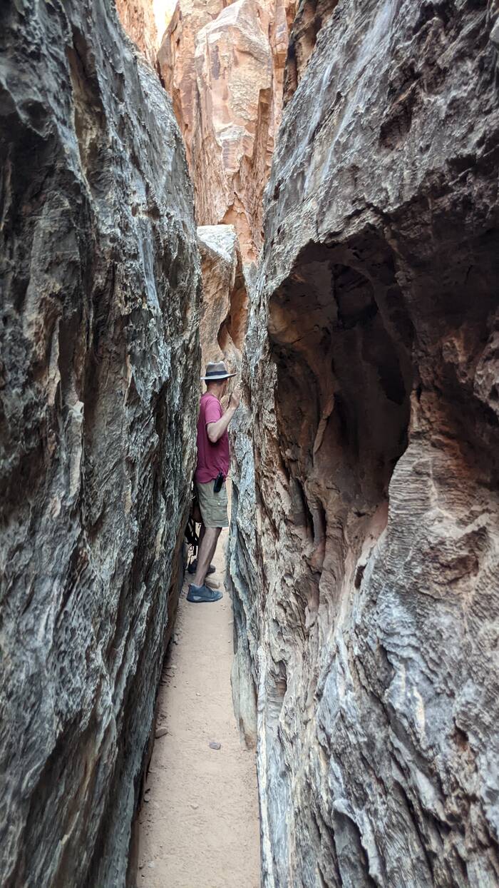 We went back the way we came up, and on the way we stopped at a side slot canyon to check it out. Quite the squeeze getting all the way to the end!