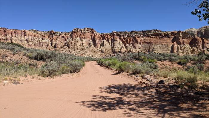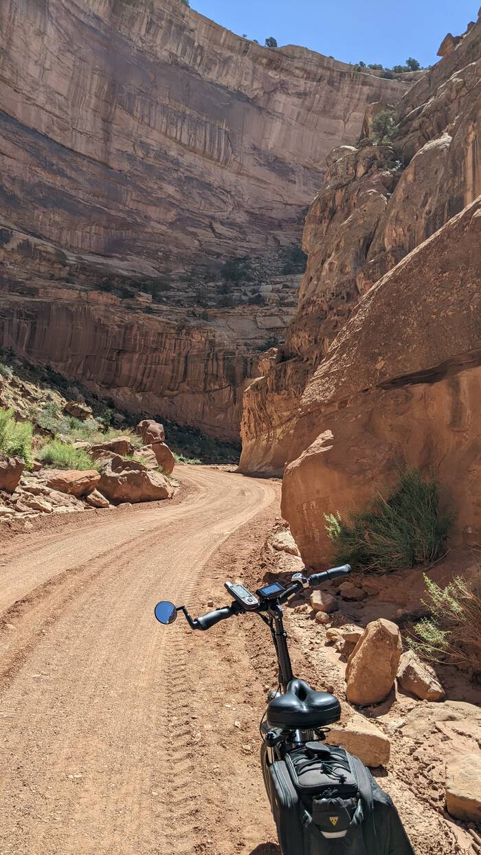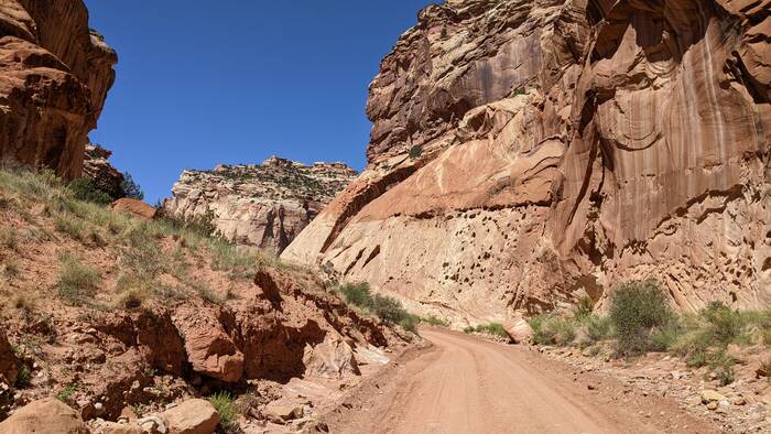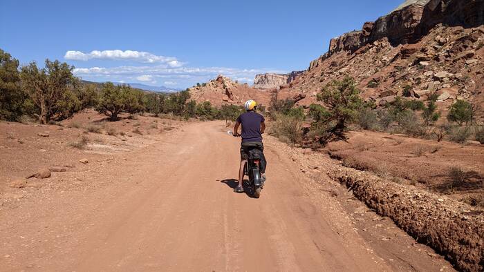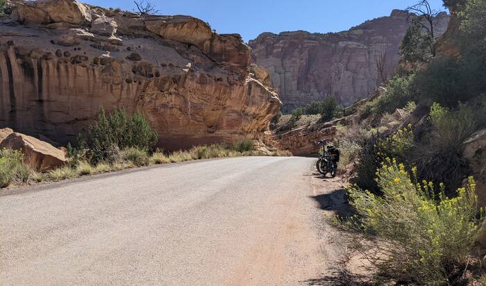 We also took another side dirt road along the wash of Capitol Gorge. It was really nice to ride our bikes rather than drive this road so that we could go slow and gawk at the views without worrying about blocking the road. Not that there was much traffic. In fact, we did not encounter a whole lot of people at all at this park during our stay. Apparently, Capitol Reef is one of the least visited of the Utah national parks.