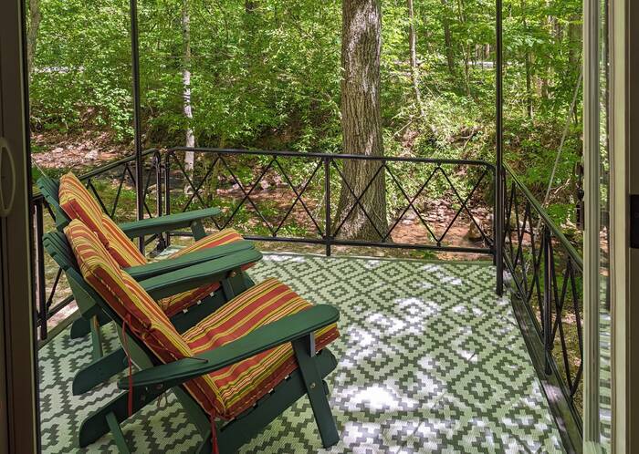 It's hard to see in this photo, but there is a creek right behind the deck