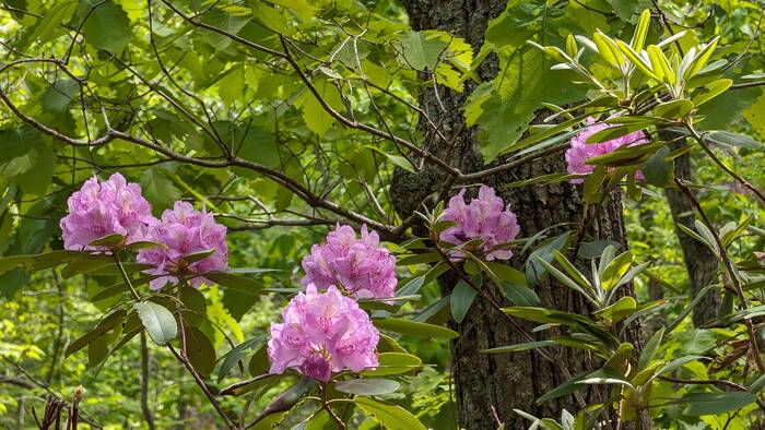 Lots of rhododendrons succumbed to the fire, but part of this one survived