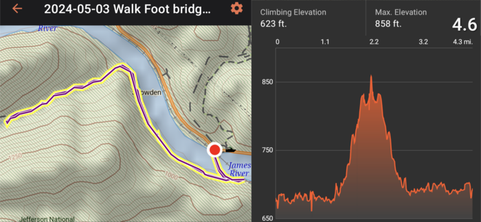 The next day, we drove to the James River Foot Bridge and walked a little of the Appalachian Trail.