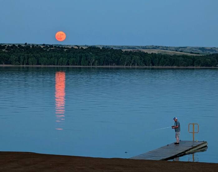 A spectacular moonrise over the Missouri River --the moon really was this color!