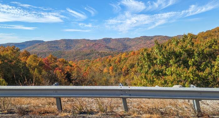It had been a while since we had nice weather for a travel day, so we very much appreciated the sunshine on our way to our destination in the Tennessee Appalachians. It was a long-ish drive, but the scenery was a notch above the Midwestern landscape we have had recently.