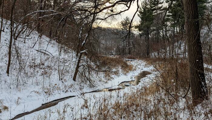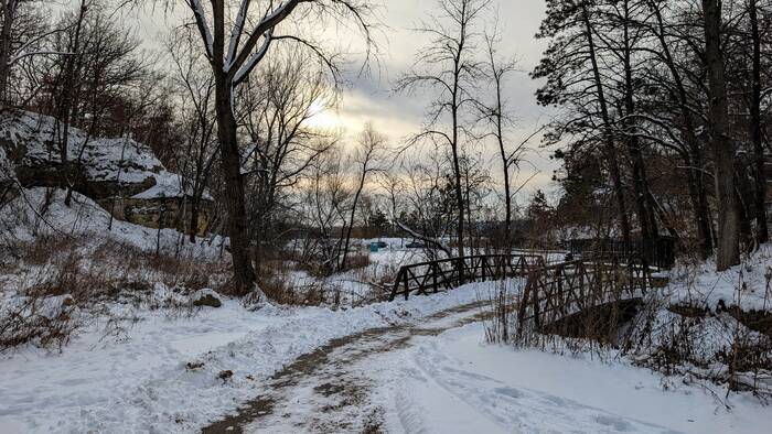 One afternoon before the snow started to melt, we took a pleasant winter walk (at times bordering more on "hike") with Alan at Battle Creek Regional Park.