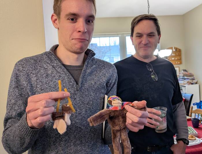 Alan enthusiastically wielding the fireplace poker he had gotten for his birthday last year