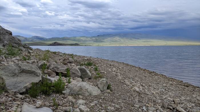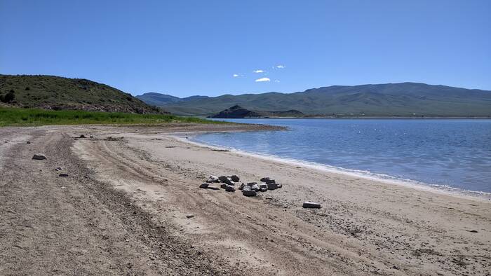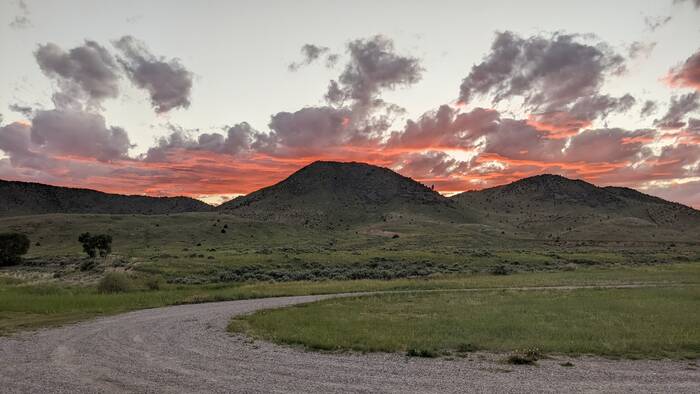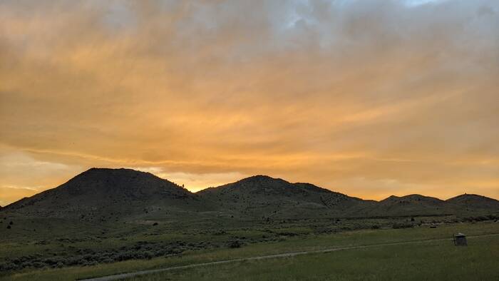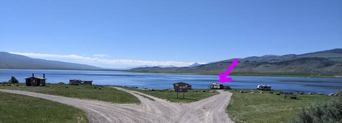 Upon arrival at Clark Canyon Reservoir, we decided to go for one of the free designated camp grounds instead of just parking randomly on the beach or along sketchy dirt roads (which is allowed here--and some did just that). After touring the first campground, we determined that we didn't like anything available and moved onto the second campground where we found a fine spot that overlooked the lake. It had a little covered shelter, but we didn't end up using it. (Just for reference, there were six free campgrounds scattered around the lake, so there was little risk of not finding a spot.) There were signs to beware of rattlesnakes, but we never saw any.