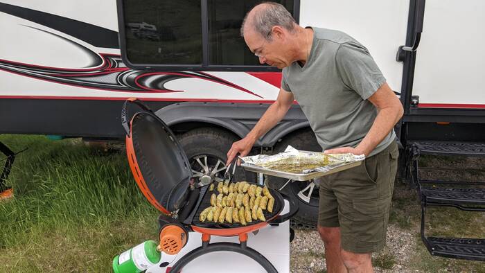 We did our own little cookout celebration on July 4th with grilled Italian sausage with peppers and onions and grilled rosemary garlic potatoes. We really enjoyed celebrating here at Clark Canyon Reservoir, although we did miss being with family and friends.