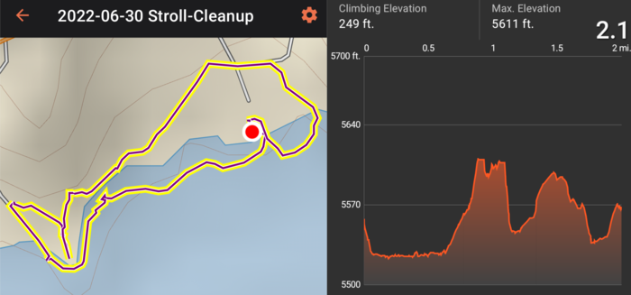 The stroll ended up being about 2 miles, and Rick filled two Menards bags full of mostly beer cans, broken bottles, and random plastic bits of junk.