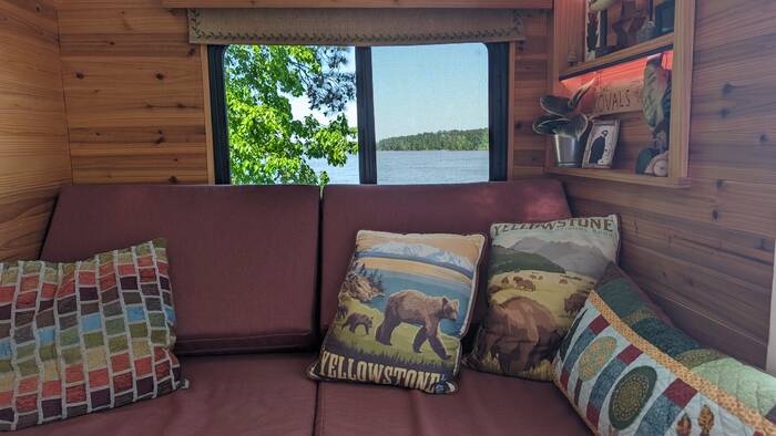 We only stayed at this location three nights, and it was very relaxing. Julie booked some future campsites, and Rick did a little puttering: wiping down the window and door screens with permethrin in an attempt to dissuade noseeums and other insects, and spending some time under the camper (doing something important to keep our camper from self-destructing, no doubt).