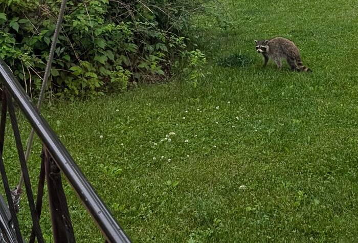 A raccoon came for a visit in broad daylight