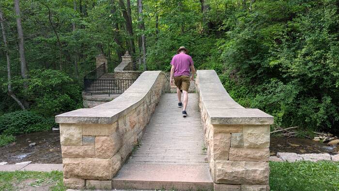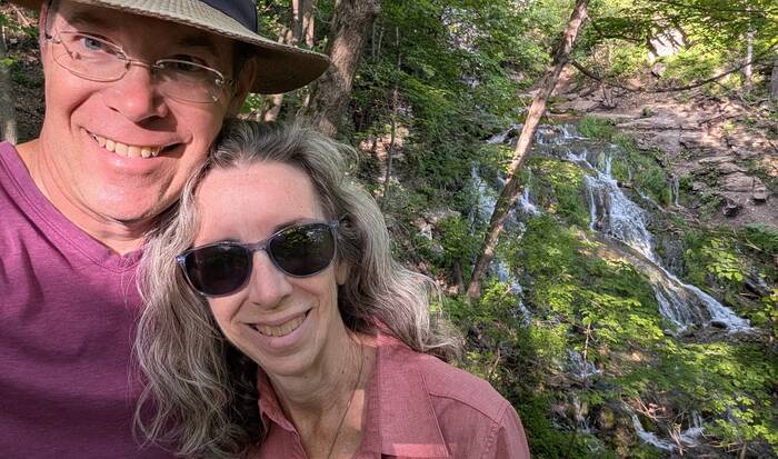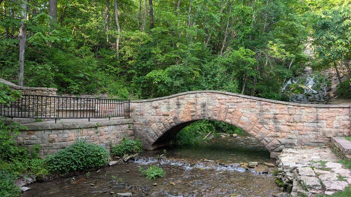 Julie was not thoroughly impressed with the aesthetics of "the fix", but she has learned flexibility in our unconventional lifestyle. So, while the epoxy was curing, we decided to resume our exploration of Decorah. We headed to the nearby Dunning's Spring Park where there was supposedly a waterfall. We weren't expecting much from a waterfall in Iowa, so we were quite surprised to find an actual, bona fide waterfall of pretty significant height.
