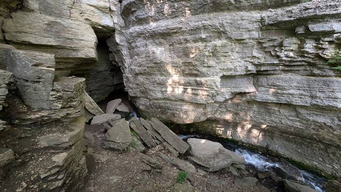 The source of the waterfall was this spring, about 200 ft high from the base of the waterfall