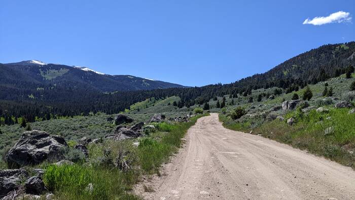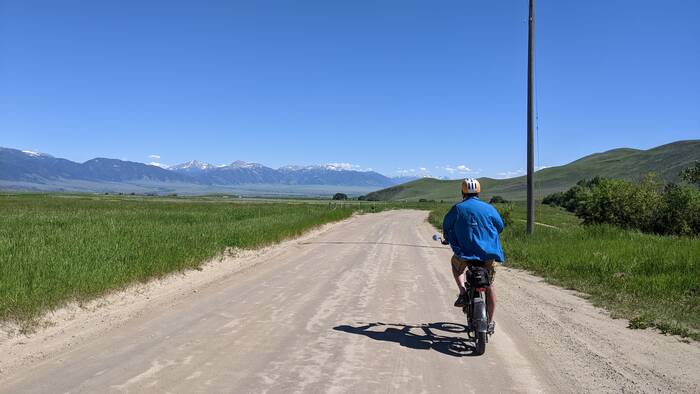 On Sunday, we noticed a brown sign across the main road from our campground that pointed to a creek access/recreation area, so we decided to check it out with our bikes. Turns out it was a really nice gravel road that led to the Beaverhead-Deerlodge National Forest (all up hill-- but no problem with our ebikes!) We ended up riding just over 26 miles, but didn't quite make it all the way to the lake we saw on the map. We were getting a bit tired and we were concerned about our batteries running out. So we stopped short of the lake and turned around. We figured we could bring the truck back the next day with the bikes and ride even further.
