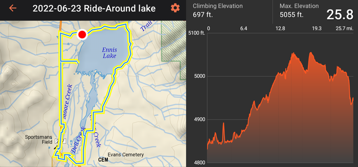 Thursday was the big ride where we went as far as we could around the lake and to the town of Ennis. We rode 25.8 miles that day.