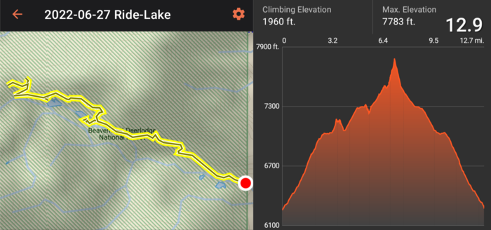This ride was only 12.9 miles but started out from an altitude of 6257 and climbed to 7783 for a total gain of 1526 feet. Have we mentioned how much we appreciate having ebikes?