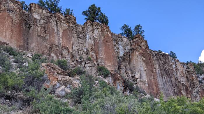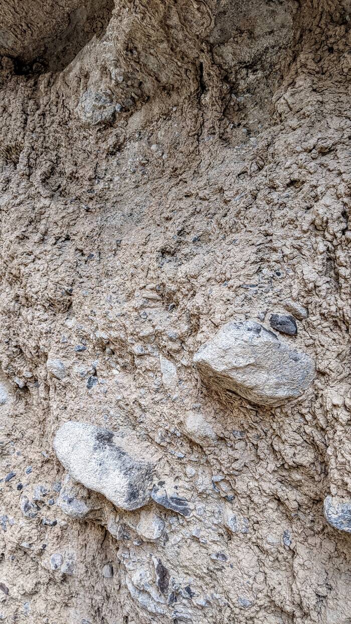 What you see in these photos isn't really rock - it is more a hardened compressed muddy slurry with an assortment of rock sizes imbedded in it. We wore gloves for climbing, and as you climbed, stuff would just crumble and slide under you. You really couldn't count on things supporting your weight unless they were pretty big size rocks, so we tried to stay away from edges as much as possible.