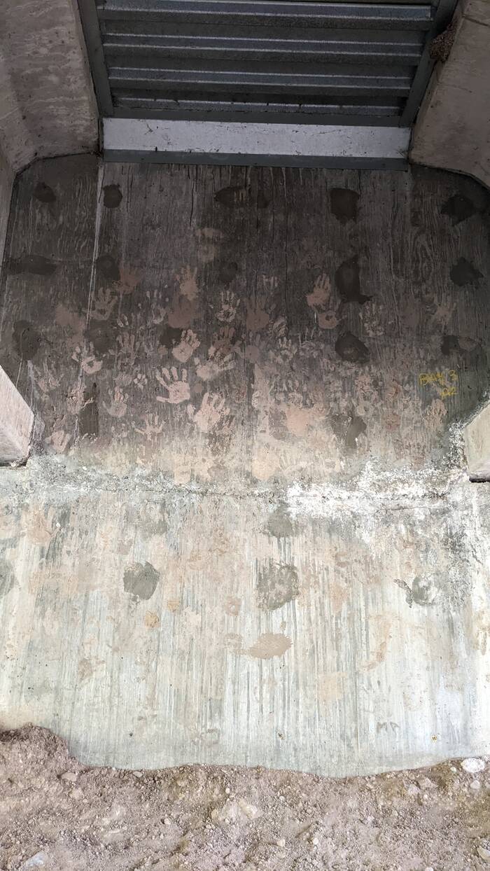 On the way to the cave, we passed under a bridge with more modern handprints.