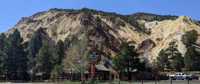That's Big Rock Candy Mountain up ahead --so named because it resembles a big mound of chocolate and caramel.
