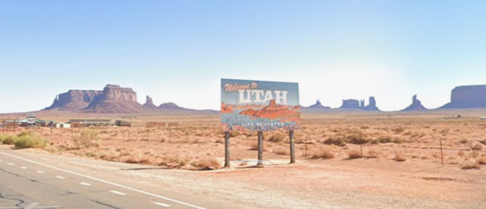 Julie's camera fritzed out at the Utah welcome sign, so she lifted this one from Google street view. It's just as well, because many of the "monuments" were shrouded in clouds when we had passed by.