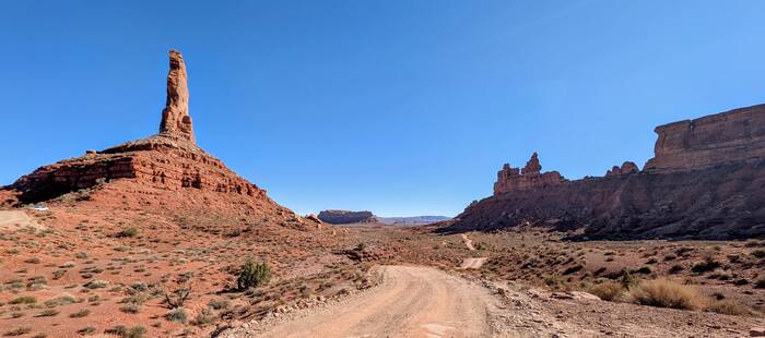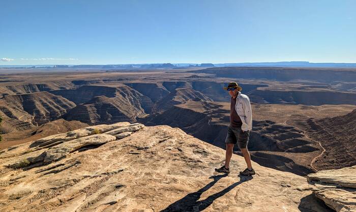 On Thursday, we drove the nearby Valley of the Gods Scenic Drive and then up the Moki Dugway. Julie has always been enamored with the iconic red rock scenery of the Southwest, so she had a hard time refraining from taking pictures at every turn.