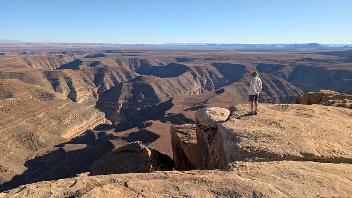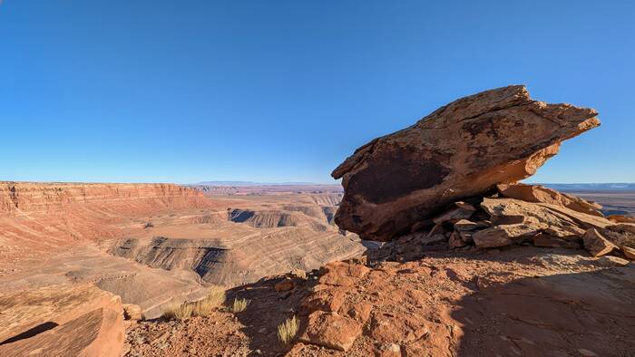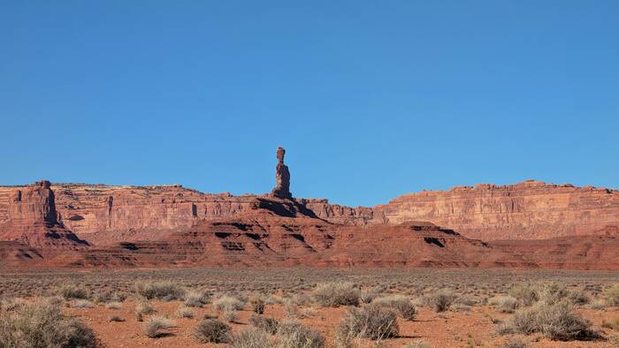 We passed through the tiny (and not particularly photogenic) town of Mexican Hat. Its main claim to fame is being near this rock formation that resembles a guy wearing a sombrero. The "hat" apparently measures 60 feet across.