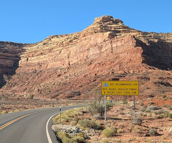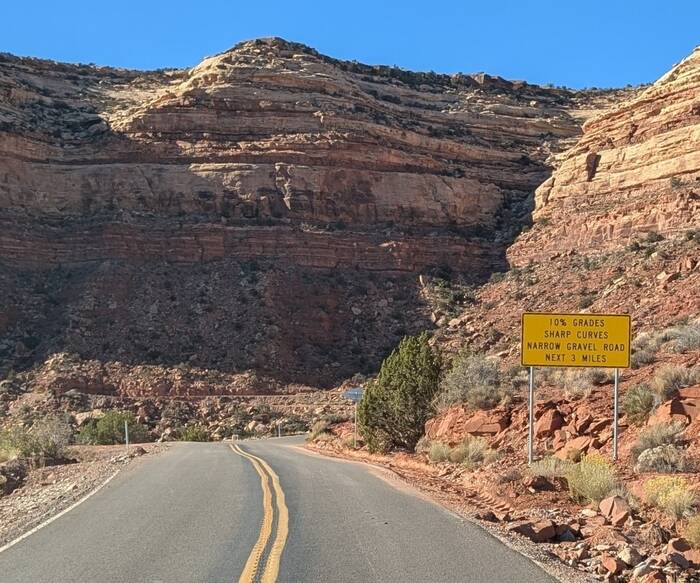 As we approached the Moki Dugway, it didn't look like anything particularly sketchy, but the signs were a bit ominous.