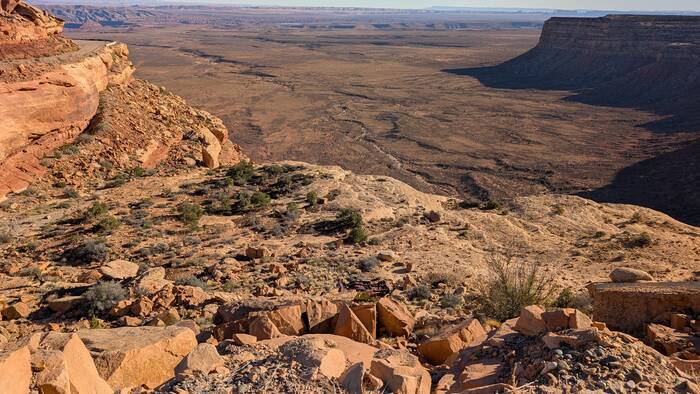Julie tried to do an internet search to see what the deal was with this car--surely someone else had noticed it and posted something. It turns out there have been many car wrecks over time, and apparently there are other abandoned wrecked cars down the cliffs that we didn't notice, so this one probably isn't anything special. During her search, however, she did come across a highly entertaining circa 1980s story of two young guys and their misadventures in a 1959 Triumph TR-3A motorcar. If you have a few moments and you need a good chuckle to brighten your day, you can read it here: https://patrickcumby.com/finding-the-moki-dugway/ .