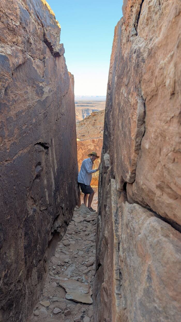 Here, Rick was determined to find a way down to a lower plateau to get "better" views.