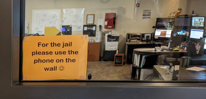 Our stop for the night was just outside the town of Sydney, Montana. The campground we stayed at was free, but we needed to get a permit at the sheriff's office. When we arrived at the office, we weren't sure we were in the right place...
